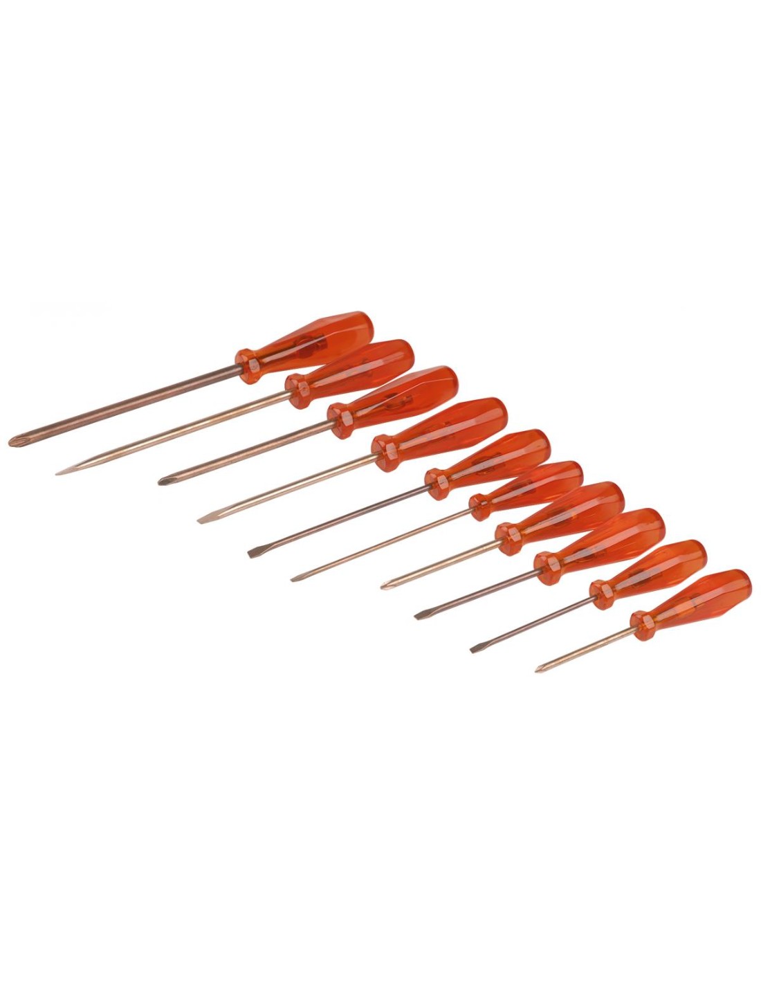 HERRAMIENTA ANTICHISPA, ANTIMAGNÉTICA Y MUY RESISTENTE A LA CORROSIÓN. Se fabrican con una aleación (aluminio-bronce especial, cobre-berilio), y están homologadas por los pertinentes organismos ofi ciales de investigación de materiales. Estas herramientas se emplean en todo el mundo en circunstancias en que las chispas suponen un peligro potencial de incendio o explosión, como en plantas petroquímicas, instalaciones químicas, obras en conducciones de combustible, refi nerías, fuerzas armadas, destilerías, silos, etc. Los moldes y los controles de calidad de las herramientas cumplen las normas DIN. Nuestro alto nivel de calidad se consigue y mantiene gracias a dichos programas de control de calidad. LAS ATMÓSFERAS EXPLOSIVAS - ATEX ATEX es una mezcla con aire, en condiciones atmosféricas, de sustancias inflamables en forma de gas,vapor, nube o polvo en las cuales después de una inflamación, la combustión se propaga al resto del entorno. Todas las empresas que utilizan substancias inflamables tienen un gran riesgo de explosión y están englobadas en la reglamentación ATEX. Herramientas certificadas por el Instituto Federal para el Análisis e Inspección de Material BAM CALIDAD SUPERIOR: Líderes en el sector. Herramientas pensadas para el nivel más alto de exigencia y dirigidas para lograr su completa satisfacción. Productos con disponibilidad inmediata. Servicio 24 horas. No duden en solicitar más información o ficha técnica. GARANTÍA: Todos los productos del catálogo de Acha están garantizados contra cualquier defecto de material o fabricación, no cubriendo los daños debidos a un uso incorrecto o deficiente, desgaste normal o mala conservación. Esta garantía cubre exclusivamente la reparación o reposición de la pieza defectuosa, y no cubrirá otros conceptos como el transporte, ni cualquier otro daño o perjuicio.