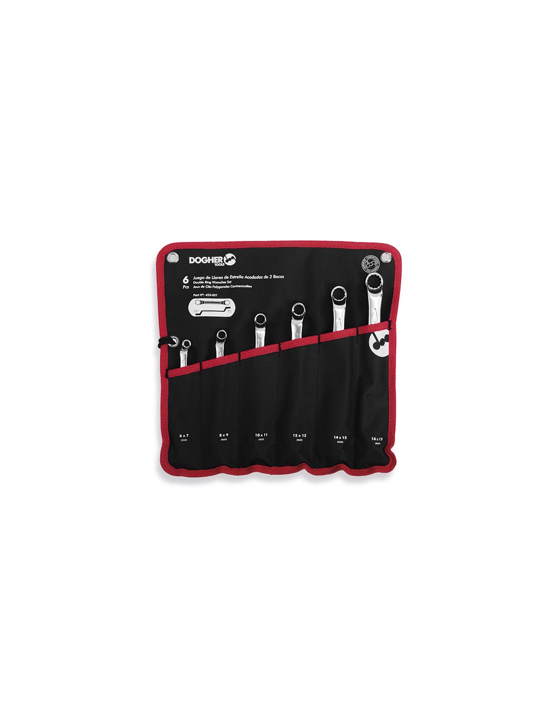 Todas las llaves DOGHER están forjadas en Cromo vanadio y templadas a través de un calentamiento continuo y enfriamiento en aceite. Este proceso aporta a la herramienta una gran dureza y tenacidad. Todo el cuerpo está pulido aumentando al máximo la resistencia a la oxidación. Calidad industrial con un servicio único, orientado al cliente profesional más exigente. Máximas prestaciones Alta Tecnología y Procesos innovadores para Producir Herramientas de Alto Rendimiento con la Mayor Calidad. El control exhaustivo de los procesos de producción y los rigurosos procedimientos de Control de Calidad permiten producir herramientas con las mayores prestaciones para cada aplicación. No duden en solicitar más información o ficha técnica Dogher Tools, S.A garantiza todas las herramientas que componen su programa de ventas contra cualquier defecto de fabricación y materiales, sin responsabilizarse bajo ningún concepto de la utilización inadecuada de los mismos. En cualquier caso, la responsabilidad de Dogher Tools, S.A. estará única y exclusivamente a la reparación o sustitución de la herramienta defectuosa con el límite máximo del valor de la herramienta suministrada, no comprometiendo abonos ni penalizaciones por ningún otro concepto. Dogher Tools, S.A. no sustituirá ninguna herramienta sin el informe técnico favorable de nuestro Departamento de Calidad.