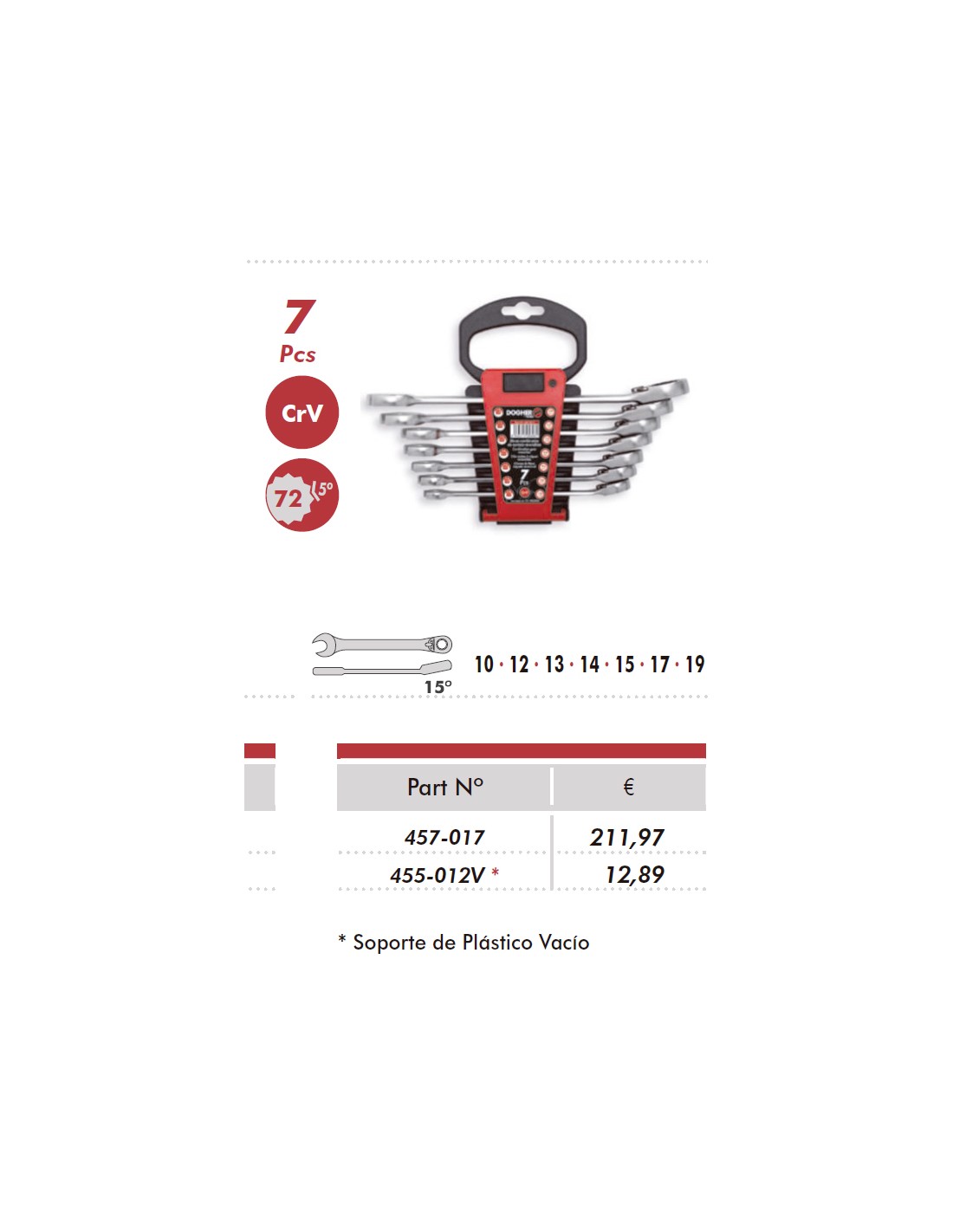 SOPORTE PLAS.LLAVES FIJAS 7 PIEZAS VACIO