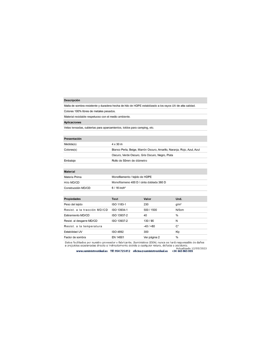 MALLA ESPECIAL VELAS TENSADAS DE SOMBRA PREMIUM 4 M ANCHO- COLOR VERDE OSCURO - PRECIO  METRO LINEAL