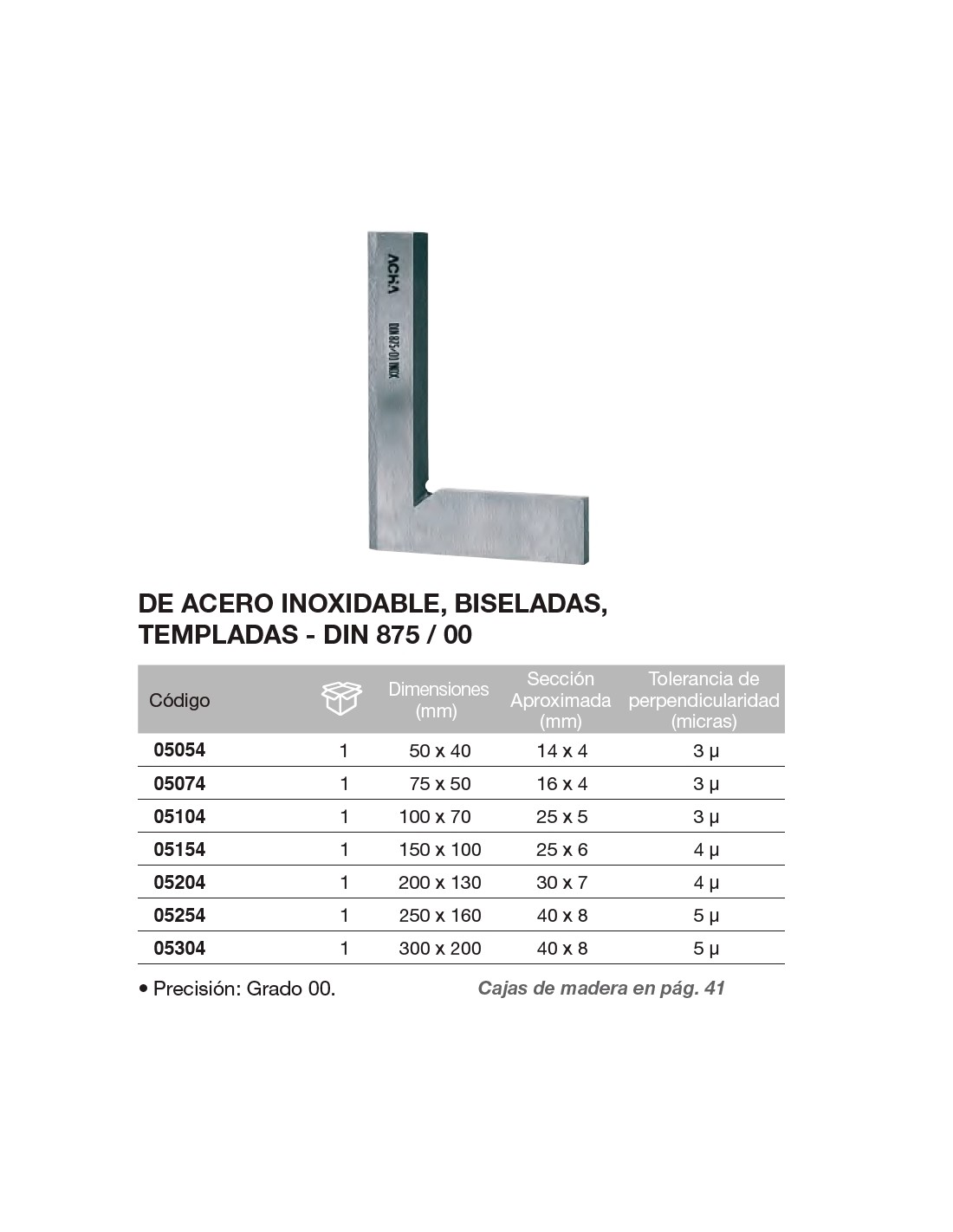 Escuadra DIN 875/00 de acero inox., biselada, templada, lisa 50 x 40mm