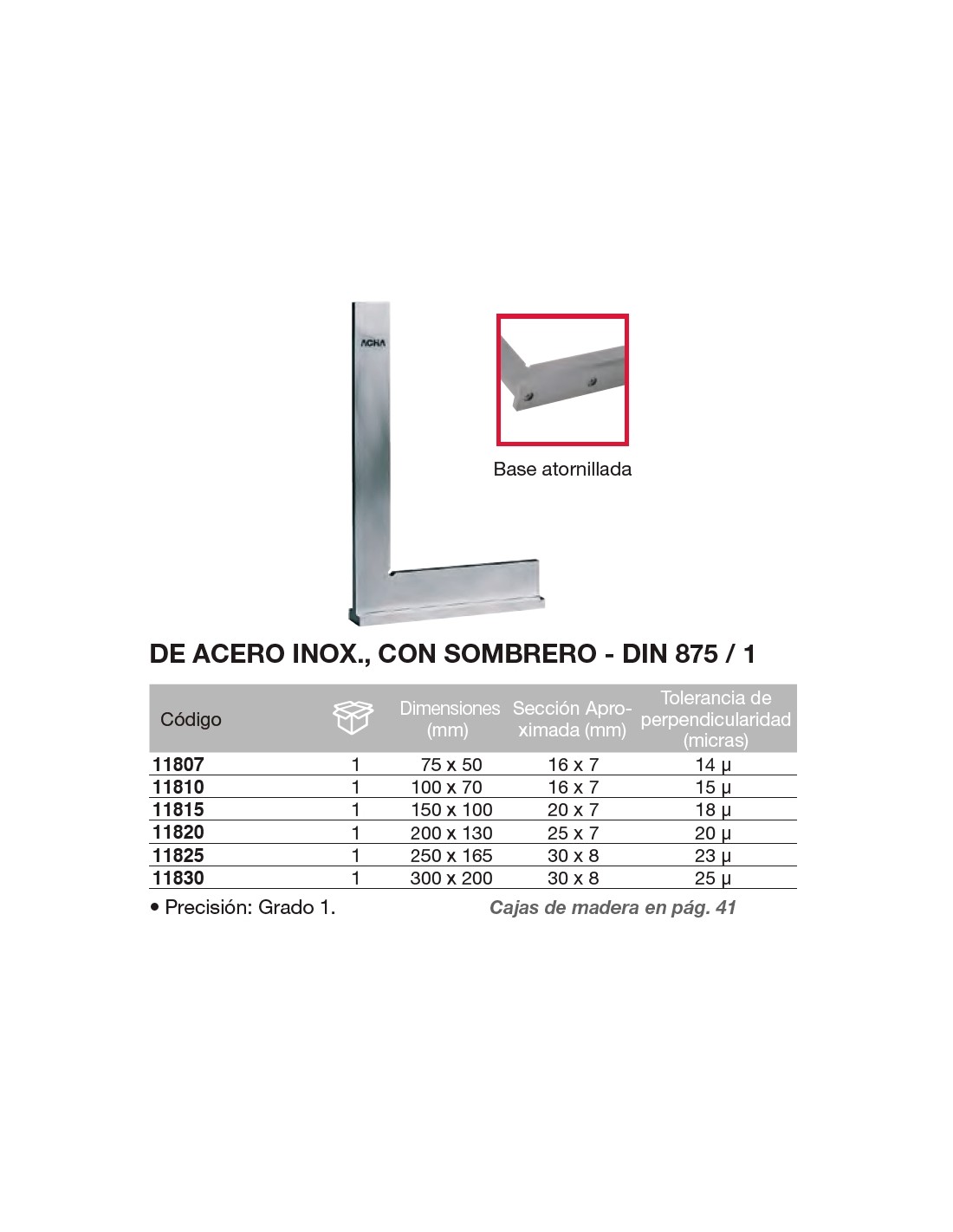 Escuadra DIN 875/1 de acero inox., con sombrero 200 x 130mm