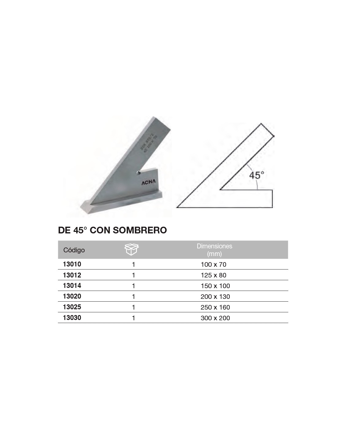 Escuadra Inox. de 45 con sombrero 200 x 130mm