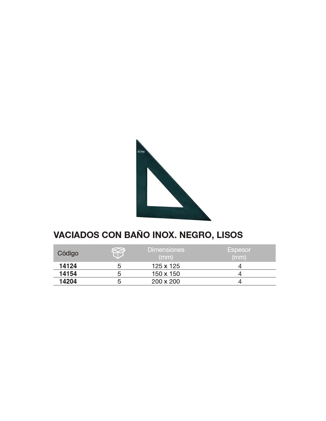 Cartabón vaciado con baño inox. negro, liso 150 x 150mm