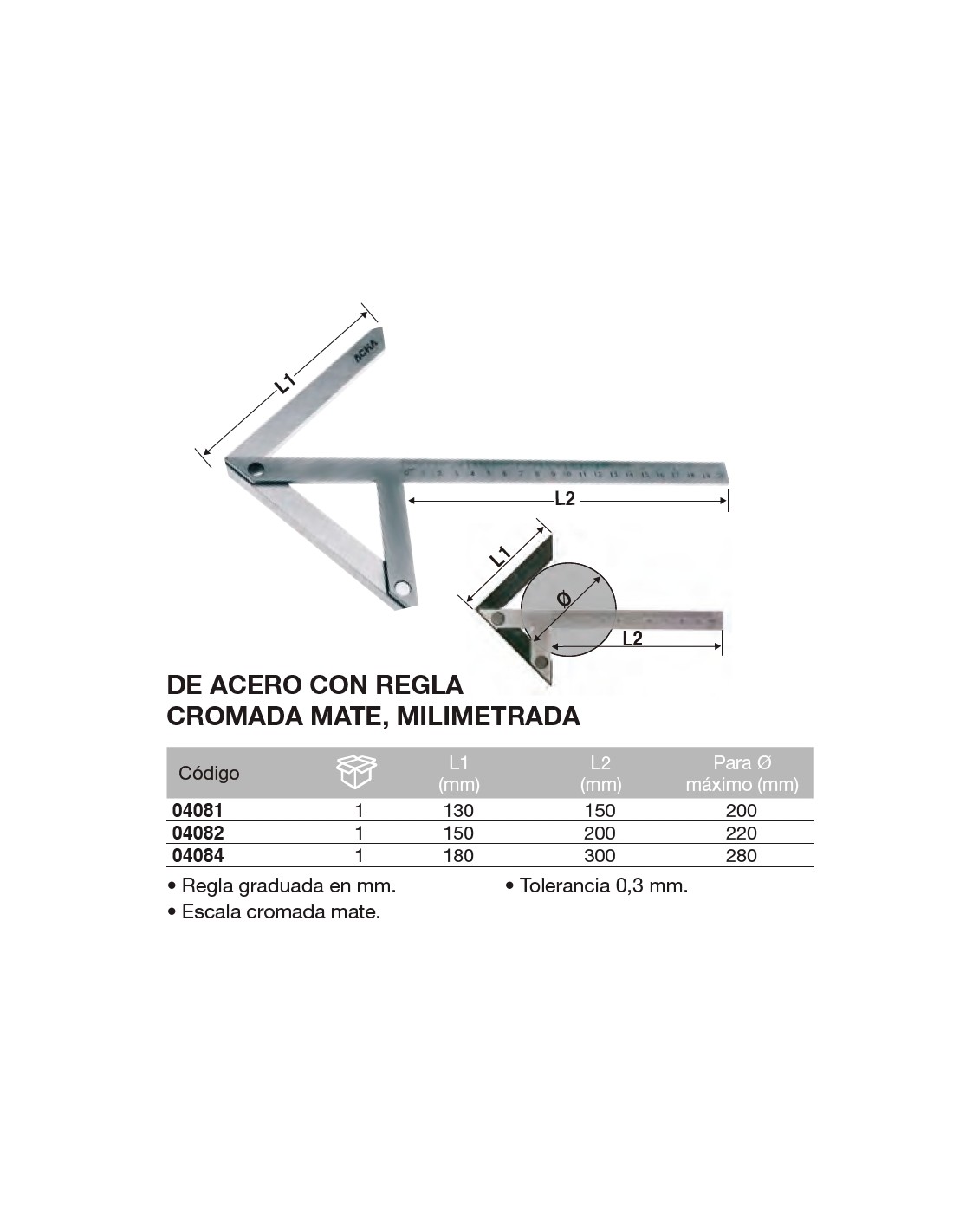 Escuadra busca centros. Regla cromada mate, milimetrada Para Ø220 máx.