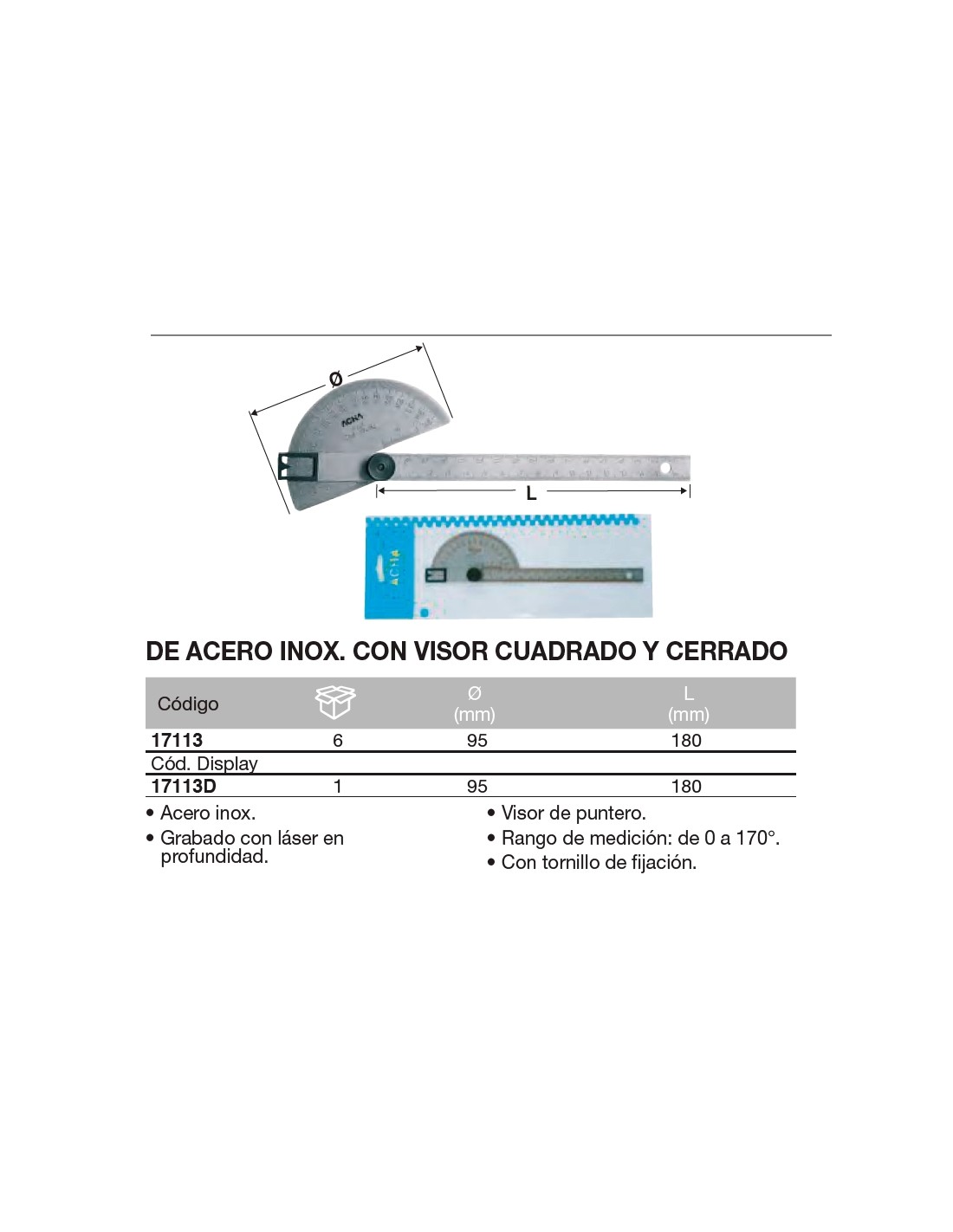 Transp. Ángulos. Acero inox. Visor cuadrado y cerrado Ø95 x 180mm