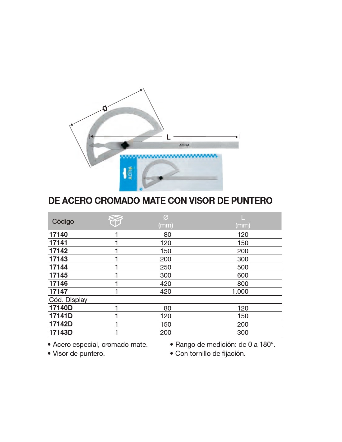 Transp. Ángulos. Acero cromado mate. Visor de puntero Ø250 x 500mm