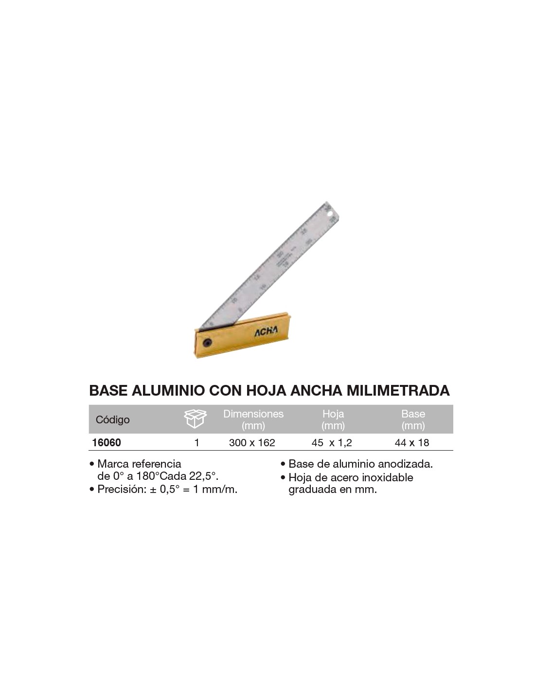 Falsa escuadra. Base de aluminio. 0 a 180. Saltos de 22,5 300mm