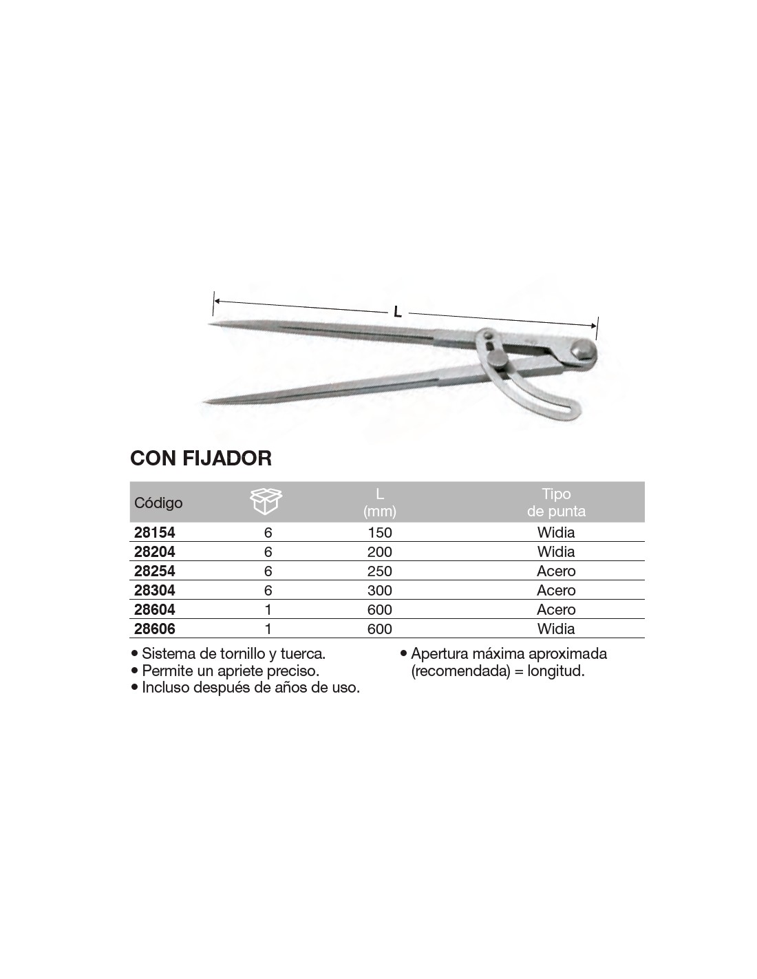 Compás de patas cuadradas con fijador. punta de "acero" 250mm