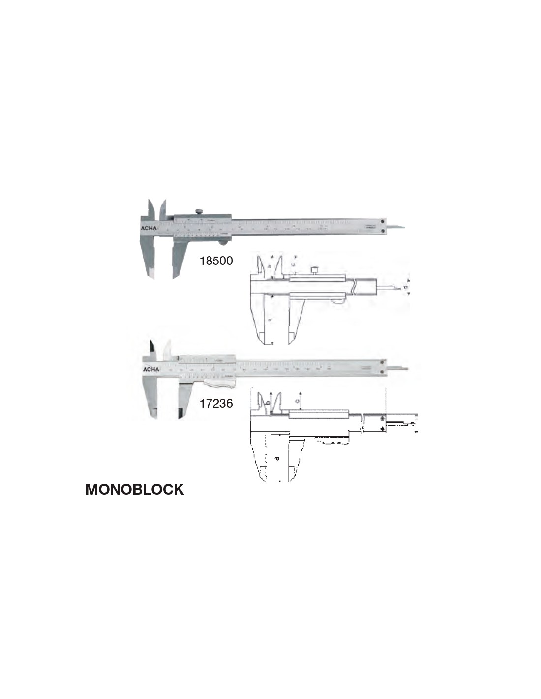 Calibre monoblock con pulsador bloqueo automático 0-200mm/Boca de 50