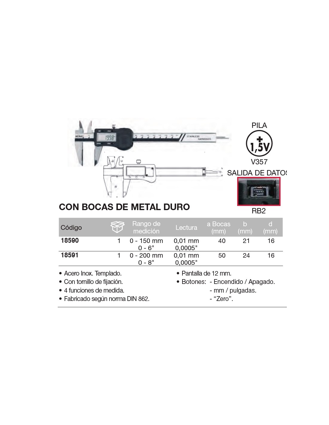 Calibre digital con bocas de metal duro 0-150mm