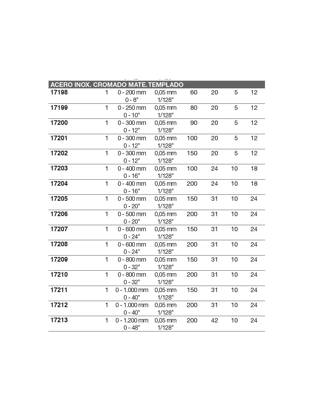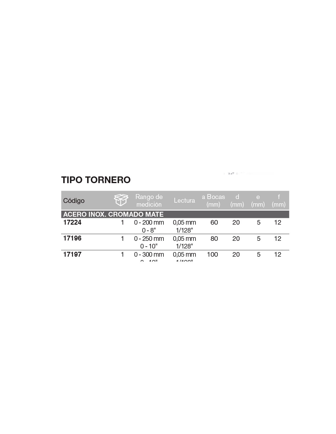 Calibre tipo tornero acero inox. cromado mate, templado 200 x Boca 60