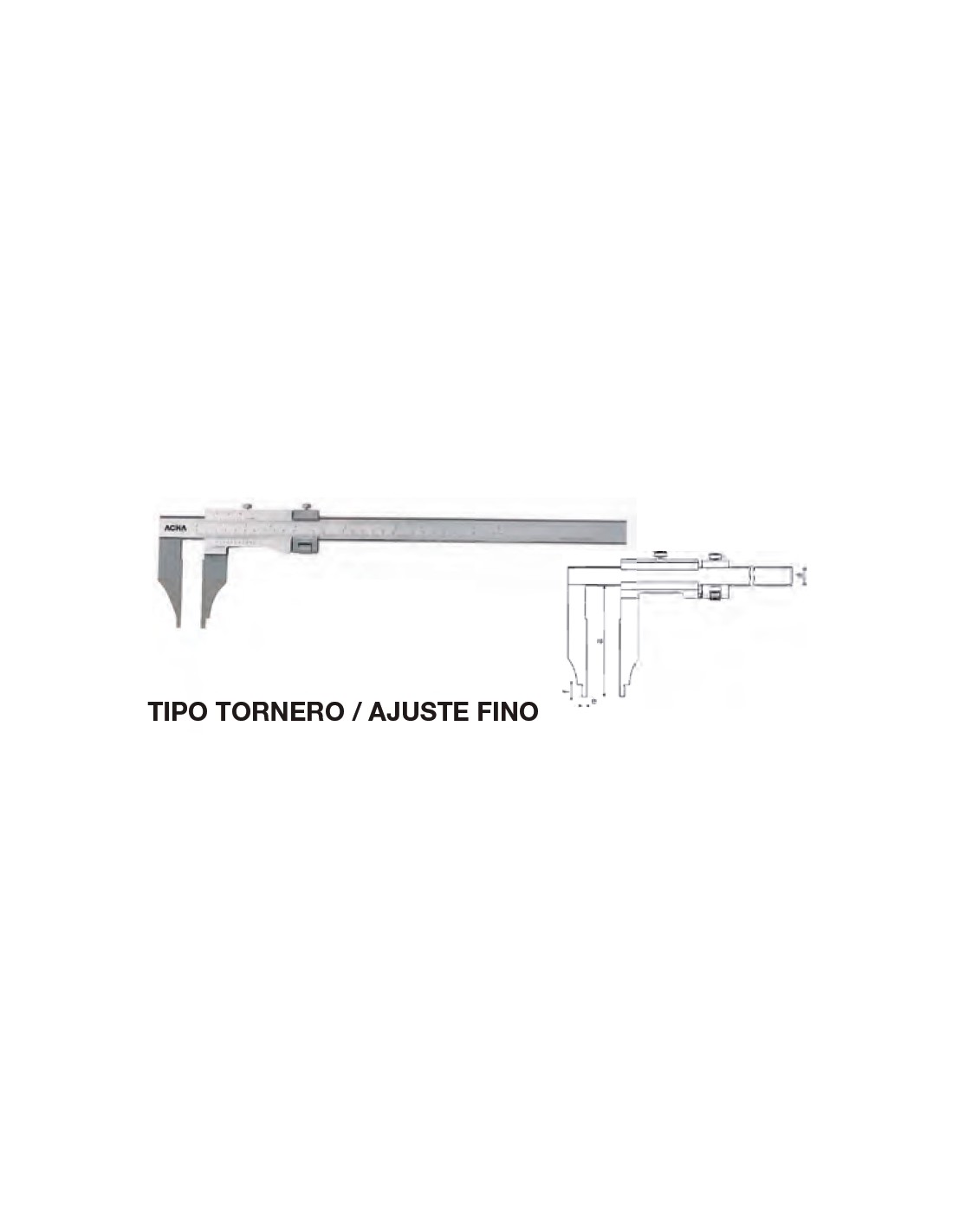 Calibre tipo tornero ajuste fino acero inox. cromado mate, templado 300 x Boca 150