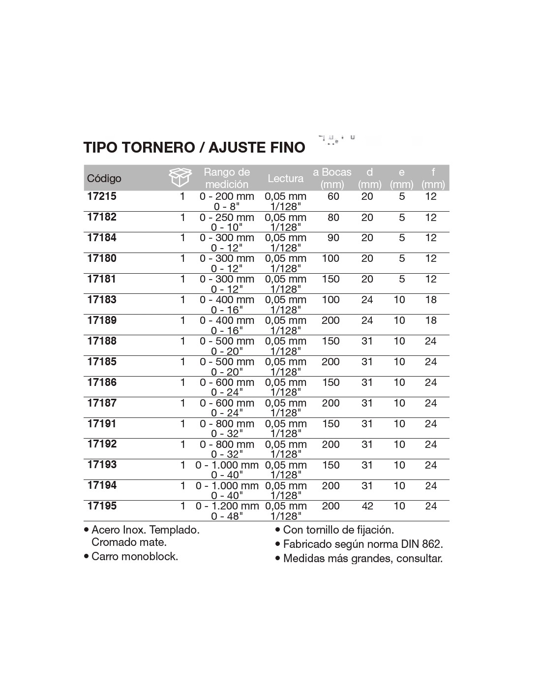 Calibre tipo tornero ajuste fino acero inox. cromado mate, templado 400 x Boca 100