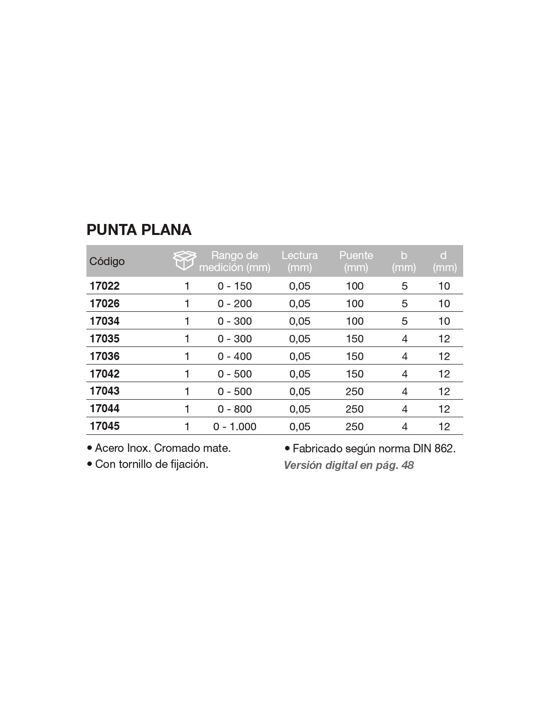 Calibre de profundidad punta plana 0-500 Puente 250