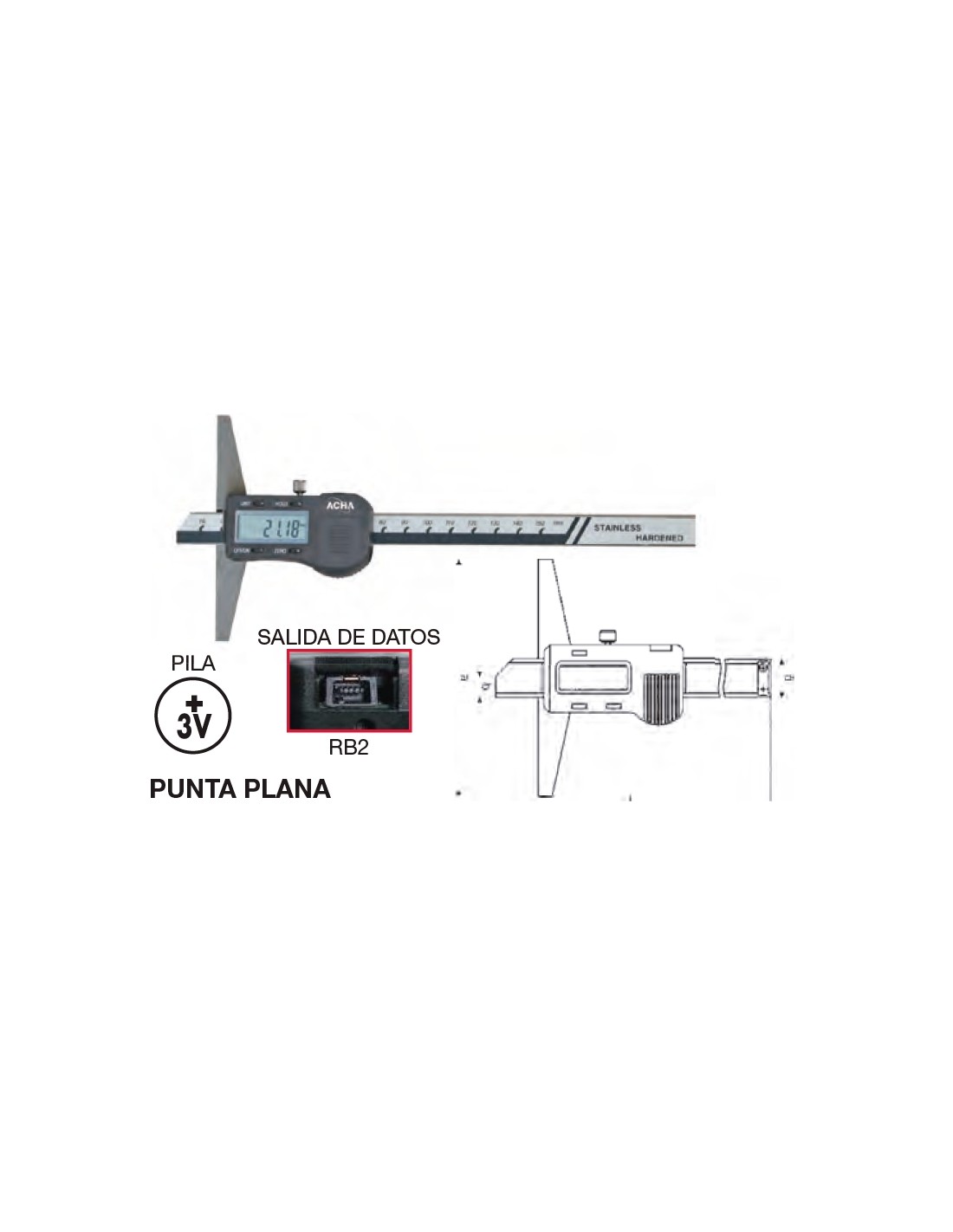 Calibre de profundidad digital punta plana 0-300 Puente 100