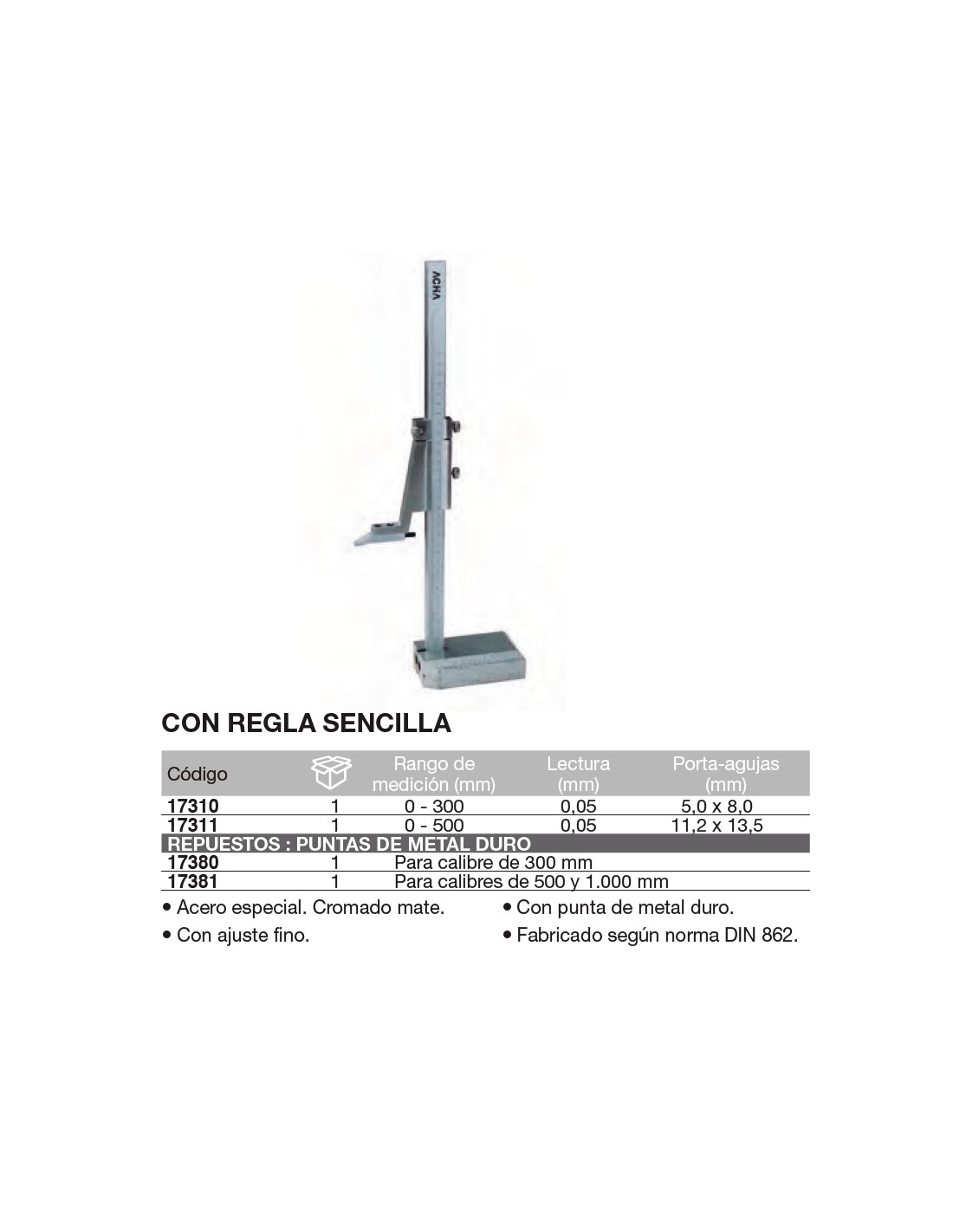 Calibre de altura / Gramil con regla sencilla 0-500mm