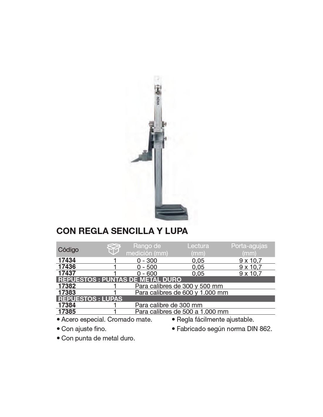 Calibres de altura / Gramil con regla sencilla y lupa 0-500mm