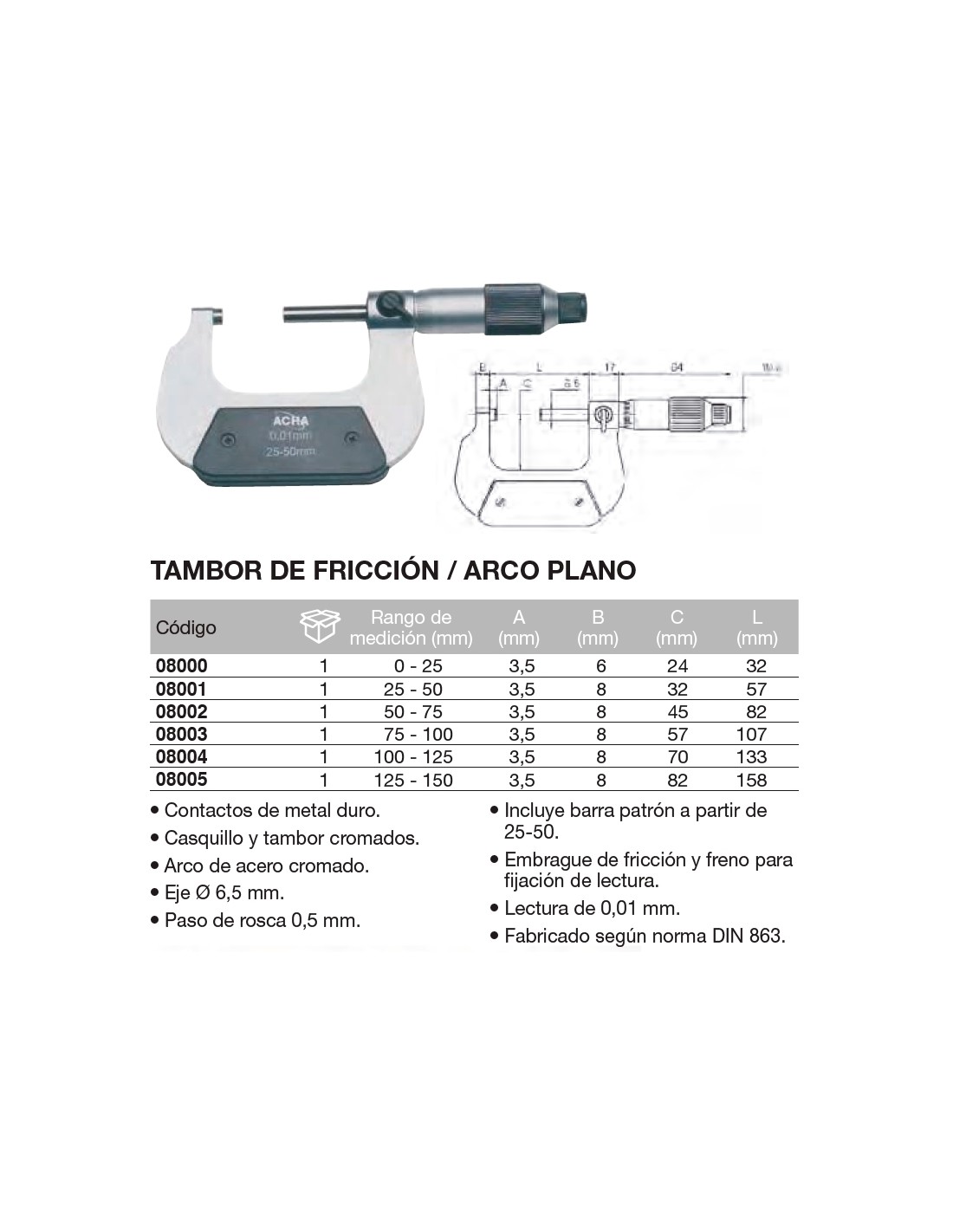 Micrómetro de exter. tambor de fricción / arco plano 100-125 / 0.01