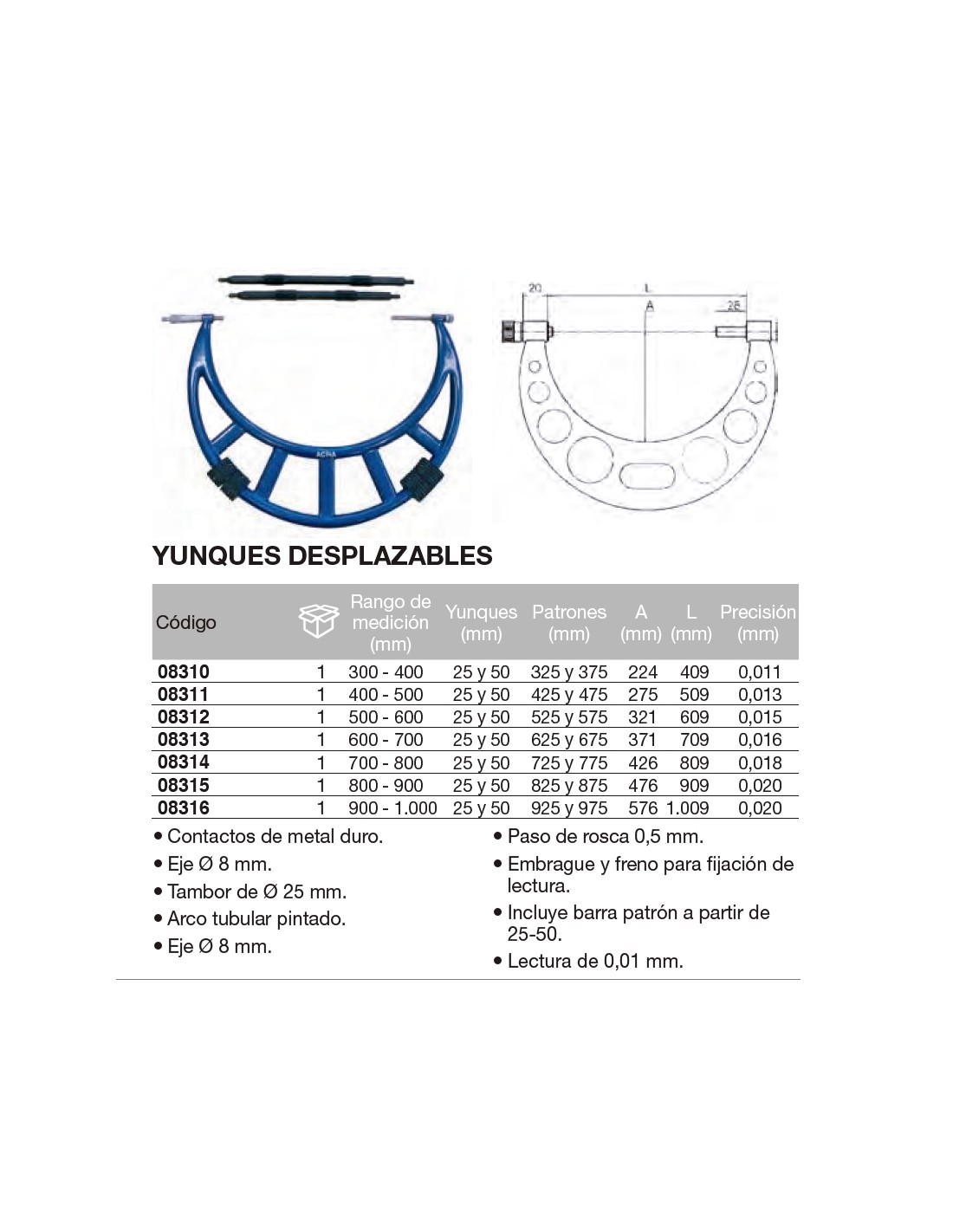 Micrómetro de exter. Yunques desplazables 300-400 / 0,01