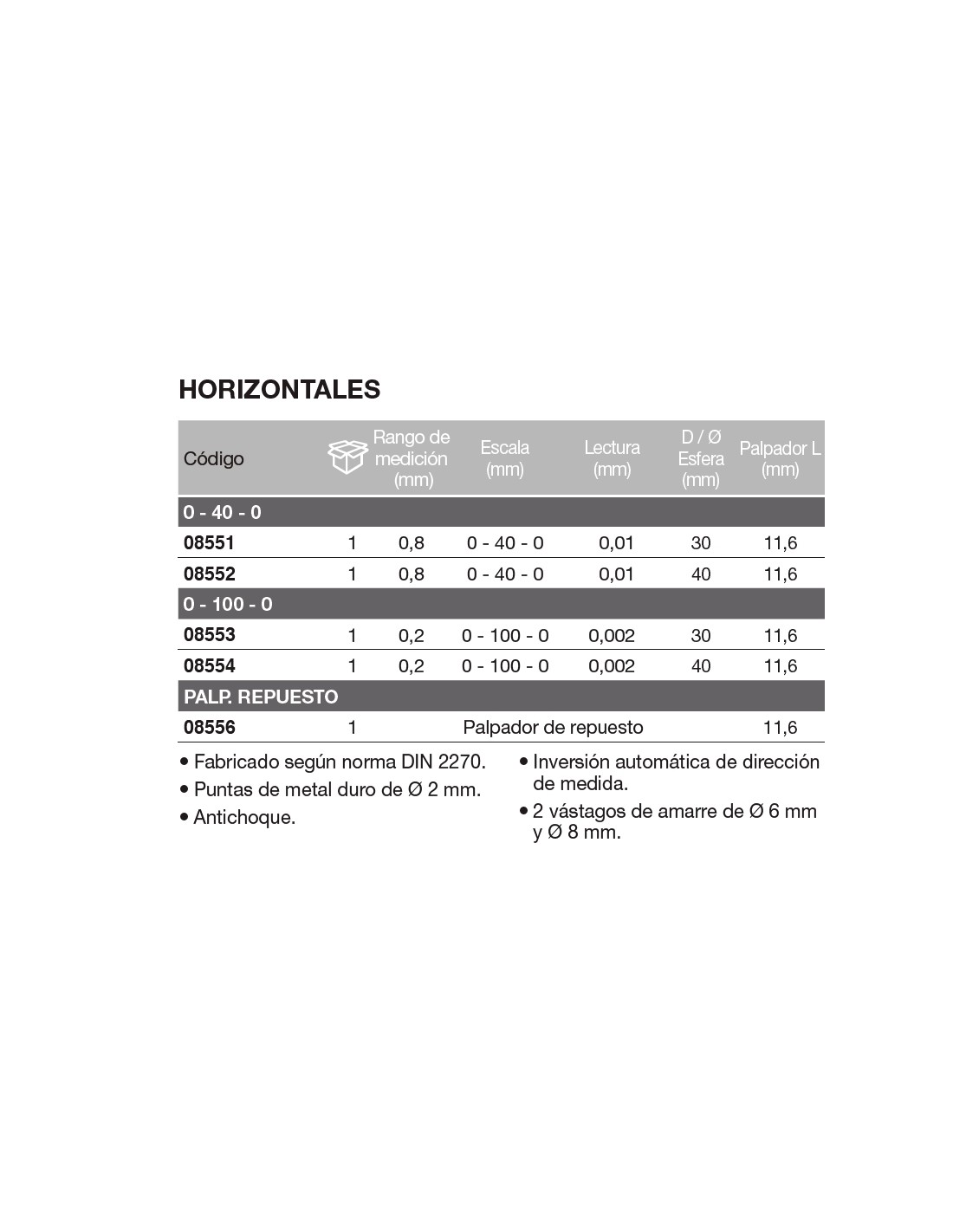 Reloj comparador con palpador orientable 0,8 / 0,01 /