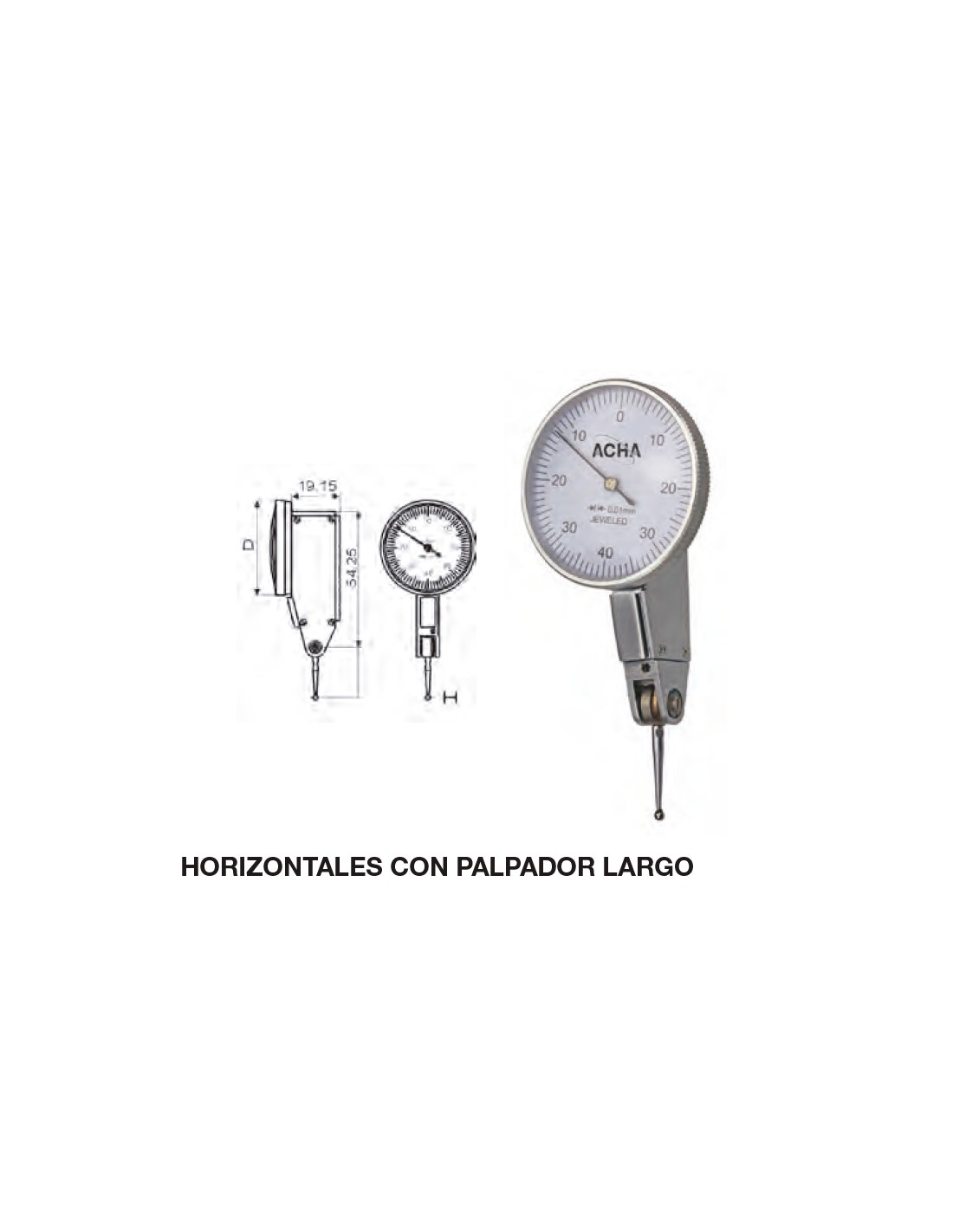 Reloj comparador con palpador largo orientable 1/0,01/