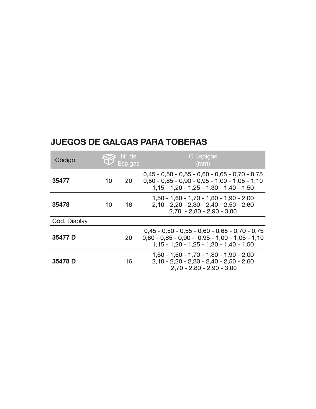 Galgas para toberas / 20 espigas